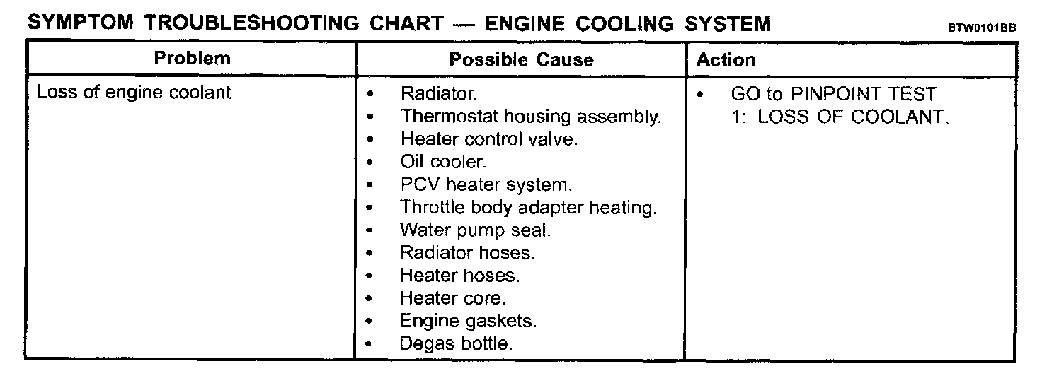Symptom Troubleshooting Chart - Engine Cooling System Part 1: