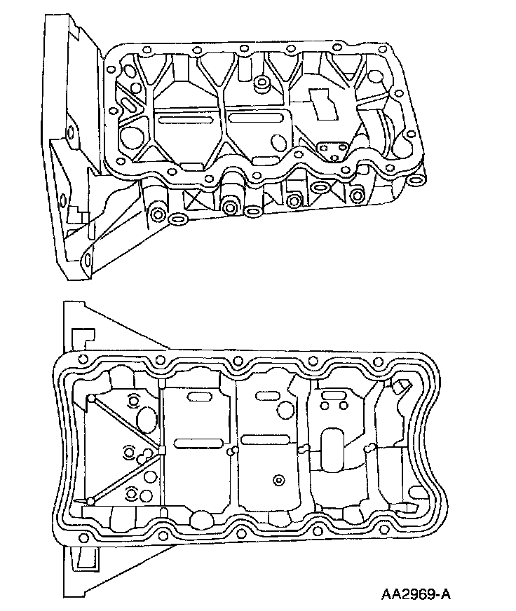 The engine is closed off at the bottom with a pressed steel oil pan which is directly attached to the lower crankcase. It is sealed with a 3 mm (0.12 inch) wide bead of sealer.