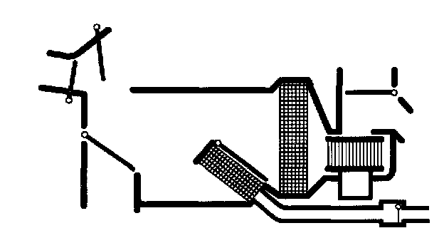 - The panel airflow door and the footwell airflow door are in the no vacuum position so that most of the incoming air is directed to the windshield defroster hose nozzle. There is also airflow to the side window demister and hose.