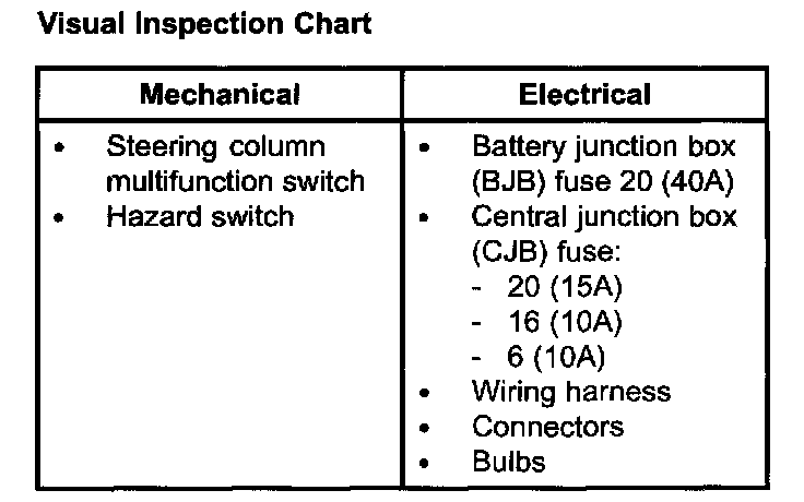 Inspection and Verification1. Verify the customer concern by operating the turn signal/hazard lamps.