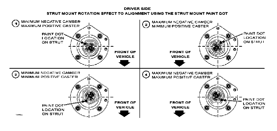GENERAL FRONT SUSPENSION UPPER STRUT MOUNT ADJUSTMENT INFORMATION: