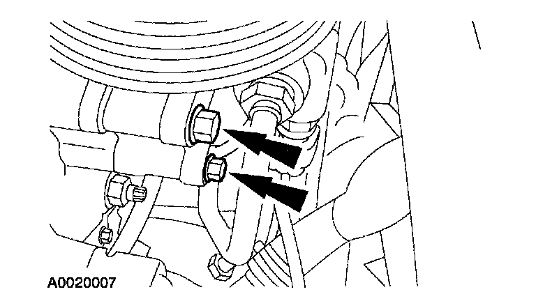4. Remove the lower power steering pump bolts.