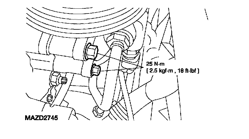 7. Install the lower power steering pump bolts.