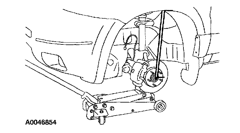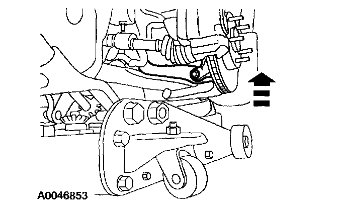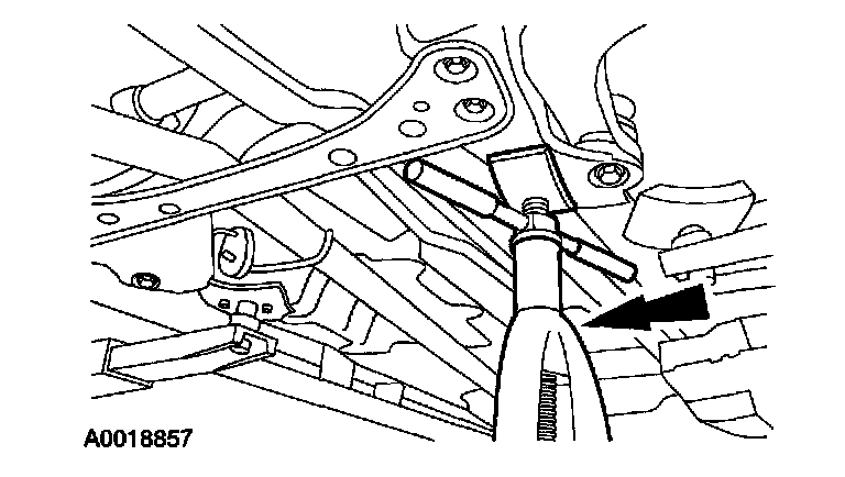 3. Position a floor jack under the ball joint and raise the control arm until the vehicle starts to rise off the hoist.