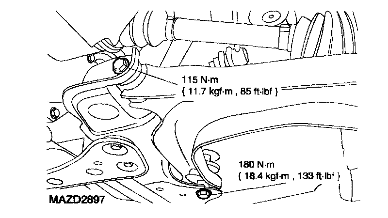 6. Tighten the lower arm bolts.
