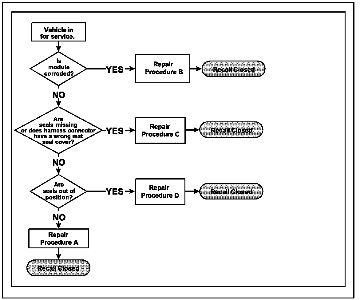 ^ If the module is not corroded, AND all the wire seals are present, AND all the wire seals are fully seated, AND the number on the mat cover is 054", proceed to REPAIR PROCEDURE "A".