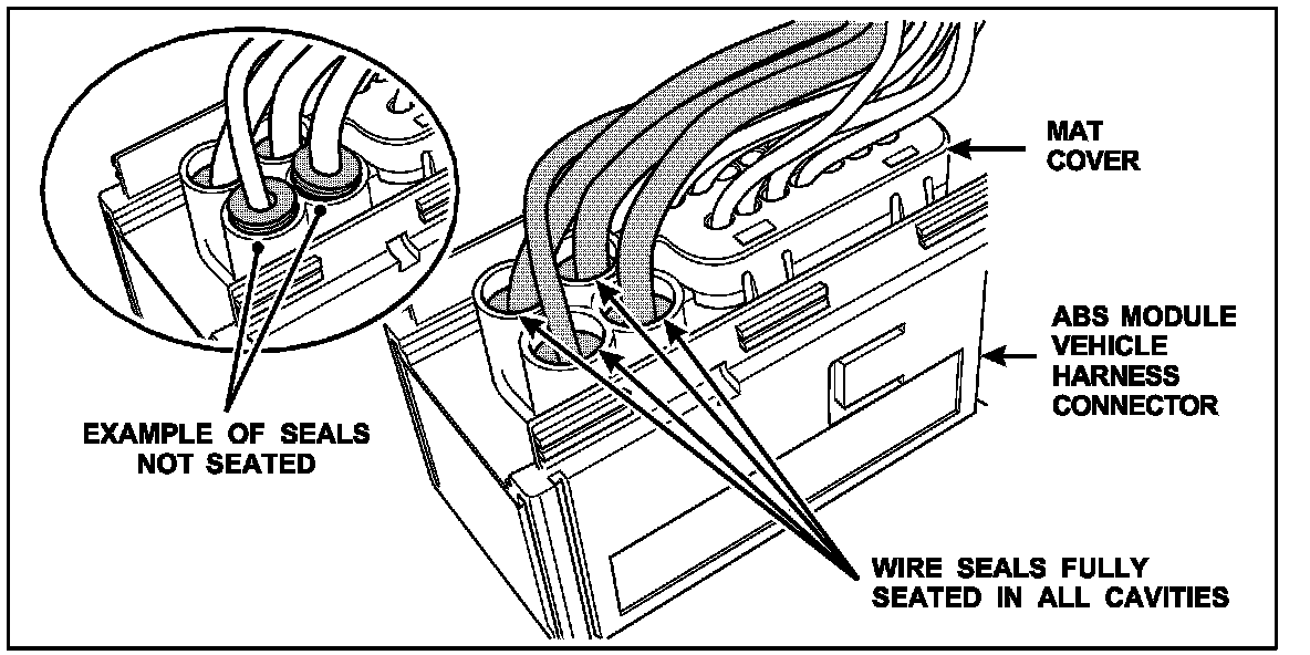During the inspection, we expect that most of the affected vehicles will not have any evidence of corrosion in the ABS module. However, the ABS wiring harness connector still needs to be inspected for missing or improperly seated seals and/or incorrect connector number.