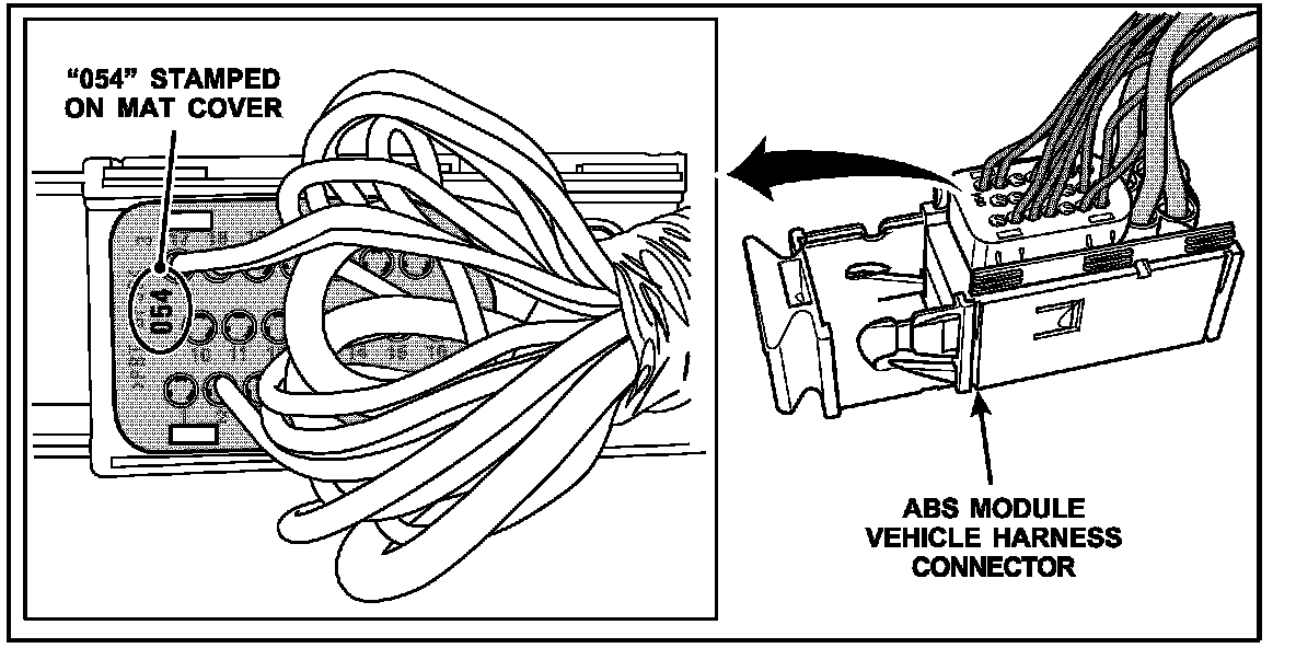 4. Lower vehicle on hoist and reconnect 2-wire connector to the ABS module.