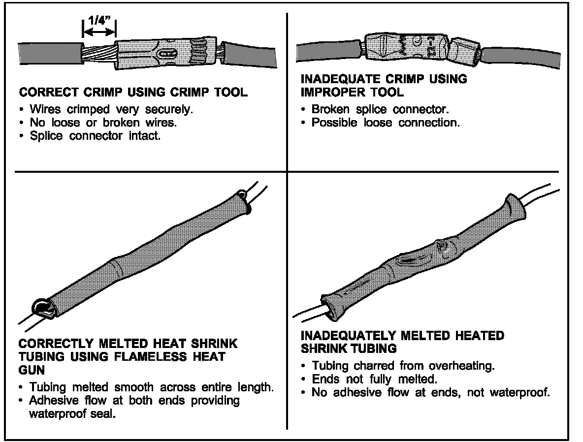 When performing the service pigtail installation, it is critical that the crimp tool and flameless heat gun be used. USING DIFFERENT TOOLS MAY RESULT IN A POOR REPAIR.