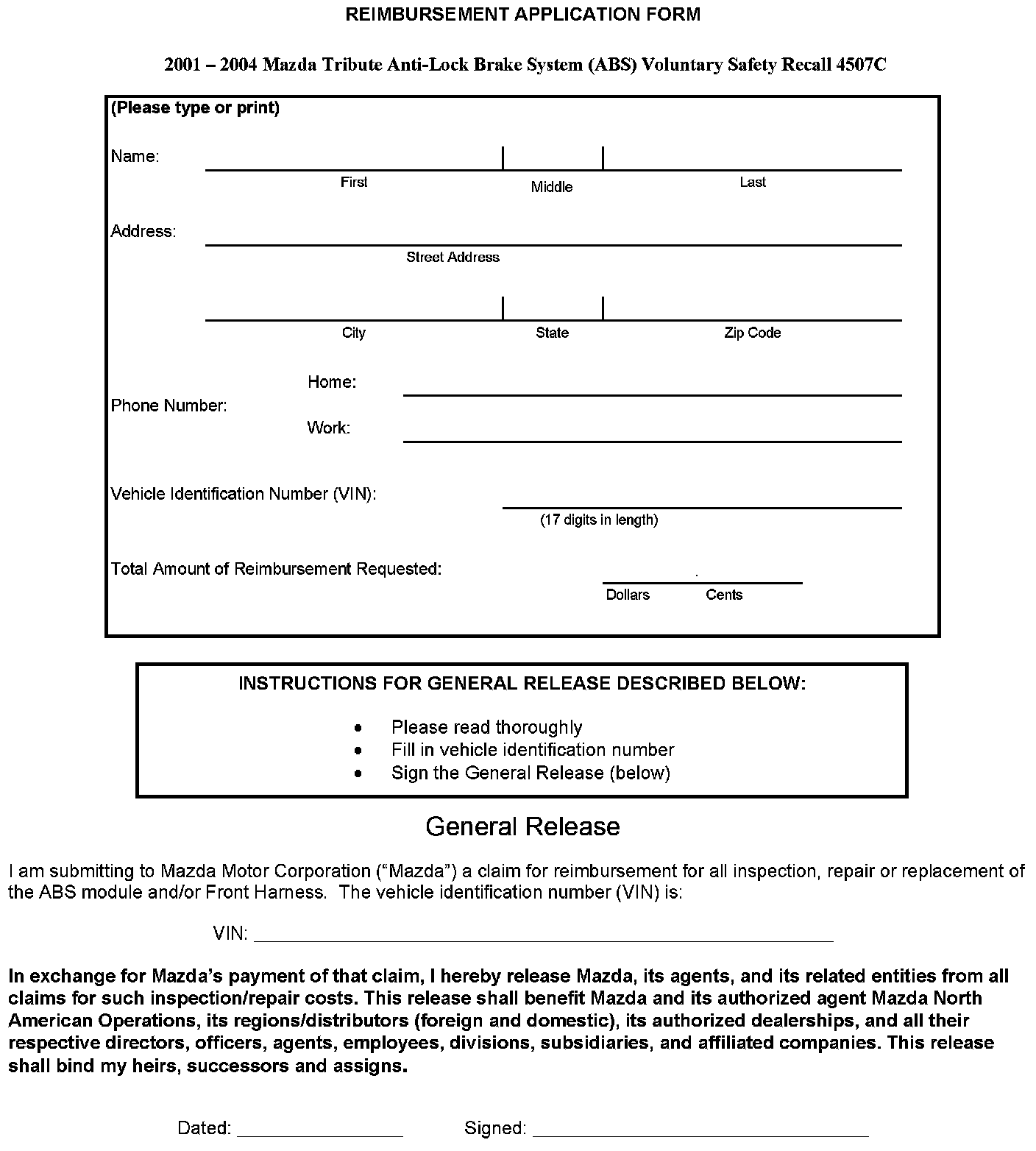 Reimbursement Application Form