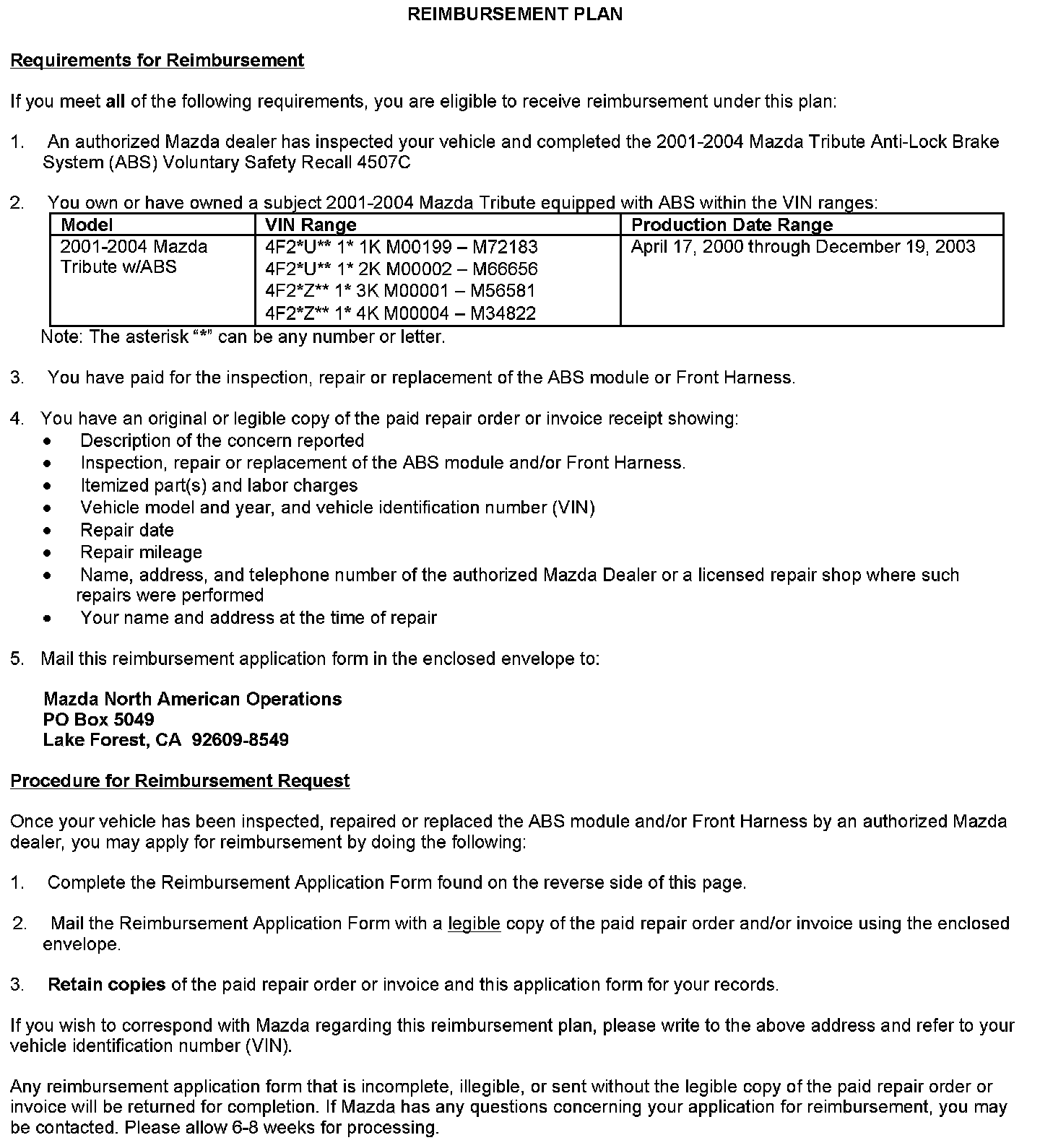 Reimbursement Plan