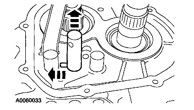 28. Raise the third/fourth gear shift rod and remove the interlock pin.
