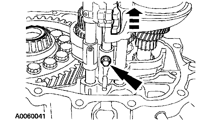 36. Remove the reverse shift lever bolt and the fifth/reverse gear shift rod.