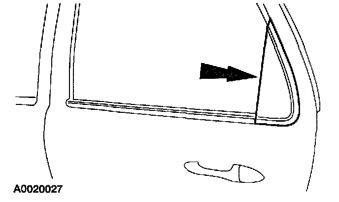 4. Remove the rear door interior glass weatherstrip,