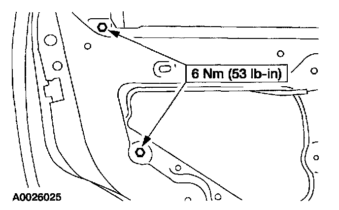 6. Remove the rear door glass top run bolts.