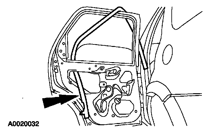 2. Position the rear door window glass to the full down position.