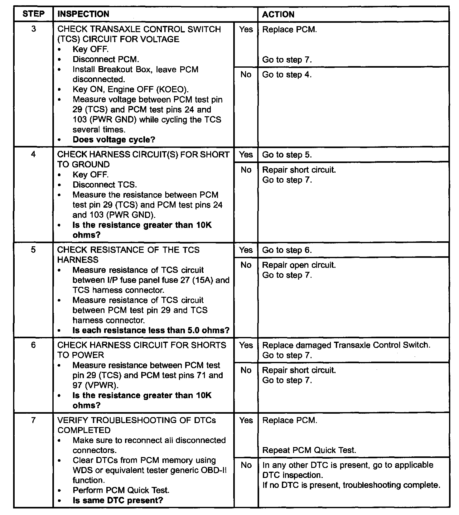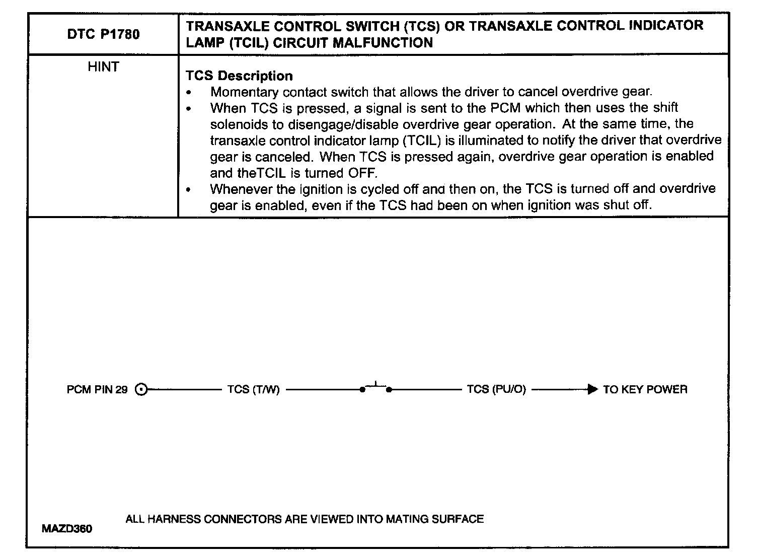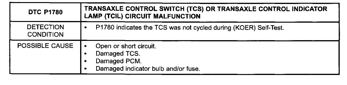 TRANSAXLE CONTROL SWITCH (TCS) OR TRANSAXLE CONTROL INDICATOR LAMP (TCIL) CIRCUIT MALFUNCTION