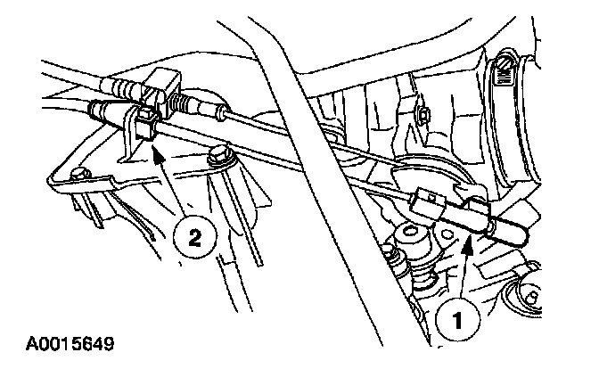 2. Squeeze the tabs and disconnect the cruise control cable from the bracket