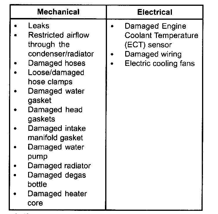 2. Inspect to determine if any of the mechanical or electrical concerns apply.