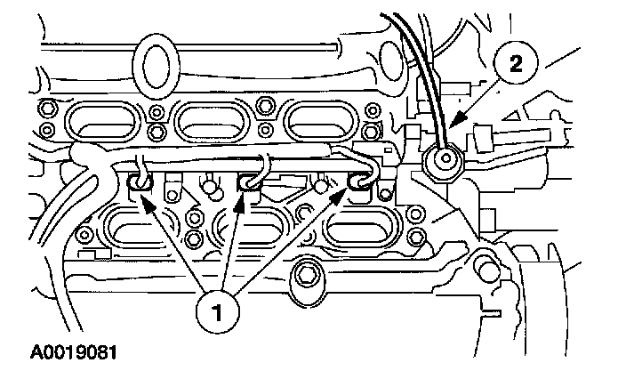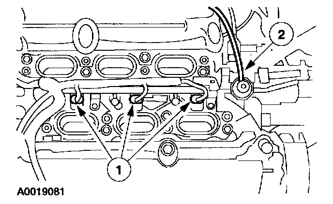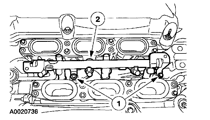 1. Position the fuel rail (1).