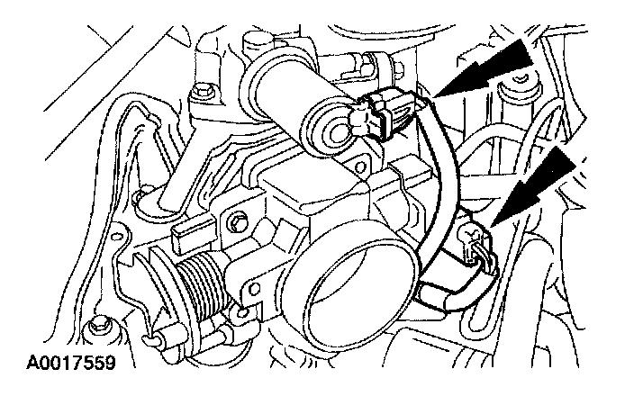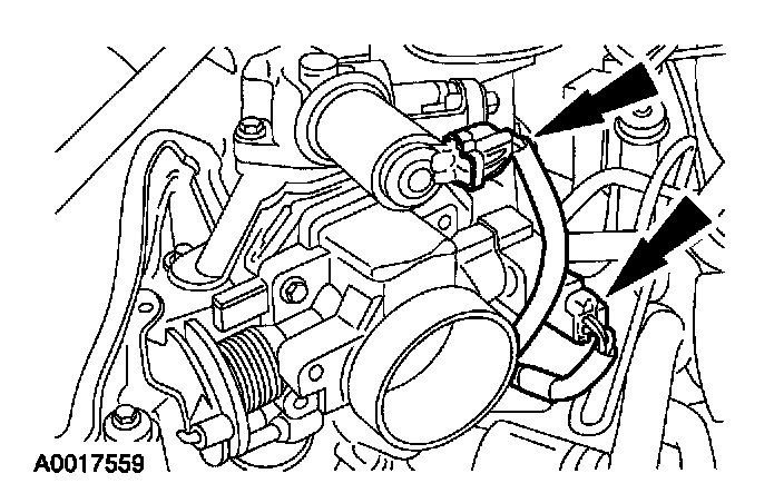 4. Disconnect the throttle position (TP) sensor and idle air control (IAC) electrical connectors.