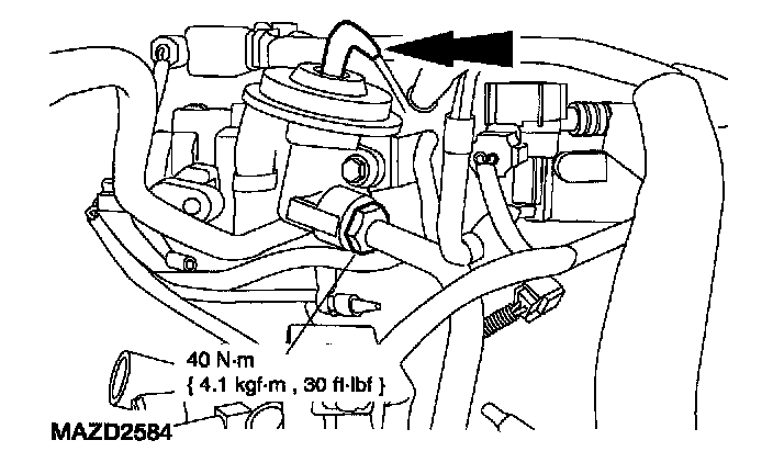 10. Install the EGR valve vacuum hose and EGR tube nut.