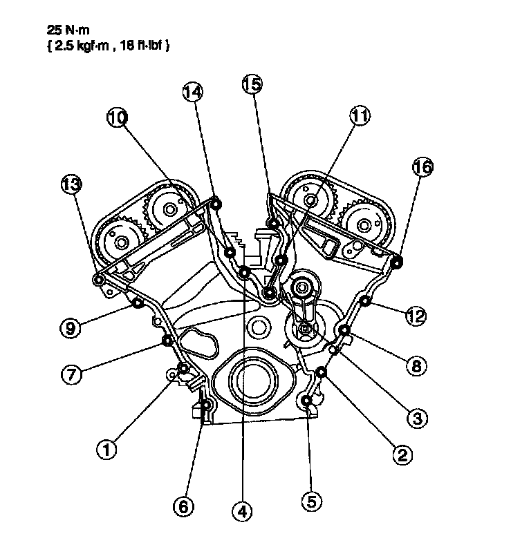 ^ The front cover must be installed and the bolts tightened within six minutes of sealant application.