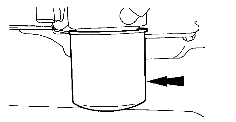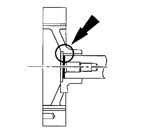 60. Align the transaxle face of the oil pan with the rear of the cylinder block. The pan should be 0.00 mm (0.0 inch)-0.25 mm (0.009 inch) under flush. Assemblies that are between 0.26 (0.01 inch) -0.50 mm (0.019 inch) should be shimmed using either one or two 0.25 mm (0.009 inch) gold shims. Assemblies that are between 0.51 mm (0.20 inch) -0.75 mm (0.029 inch) should be shimmed using either one or two 0.50 mm (0.019 inch) silver shims. If the pan measures greater than 0.75 mm (0.029 inch) or the pan is over flush of the cylinder block, the entire pan assembly must be removed and a new one installed.