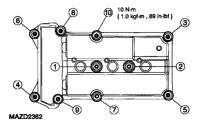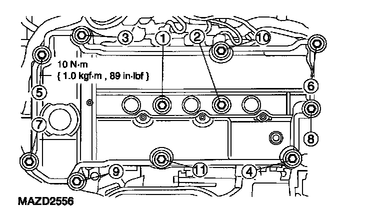 70. Position the LH valve cover and install the bolts and studs in the sequence shown.