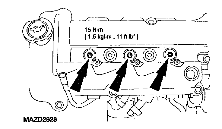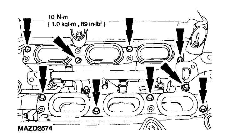 72. Install the six coil-on-plugs and install the bolts.