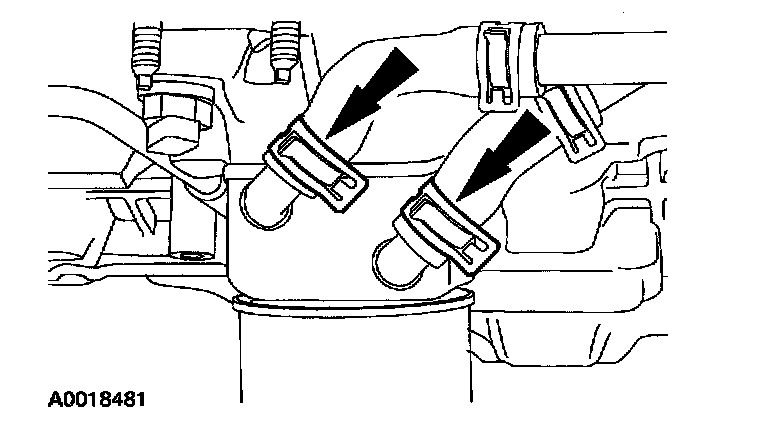 82. Connect the coolant hoses at the oil cooler.