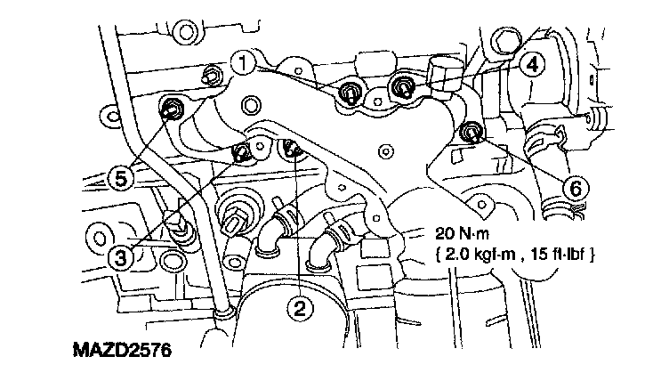 84. Position a new gasket and tighten the LH exhaust manifold nuts in the sequence shown.