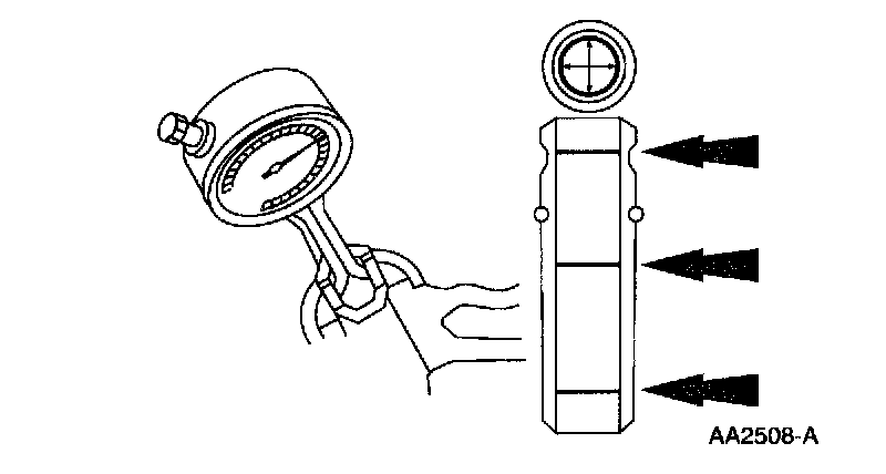 VALVE-GUIDE INNER DIAMETER1. Measure the inner diameter of the valve guides in two directions where indicated. Refer to SPECIFICATIONS.