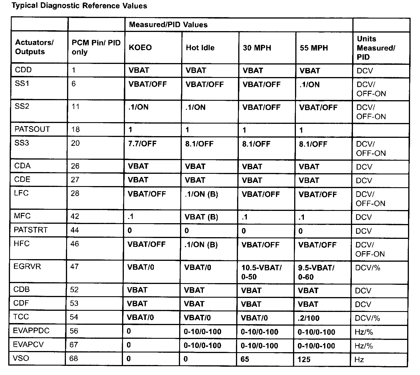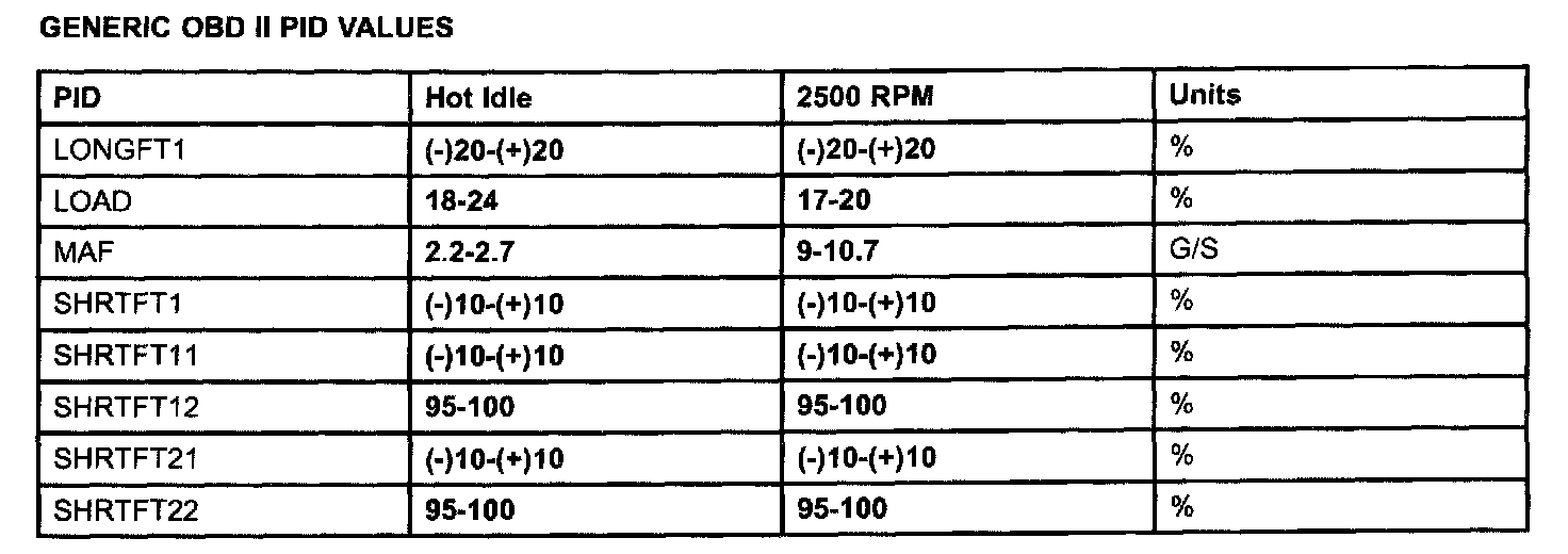 Generic OBD II PID Values: