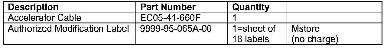 If dealers need additional Accelerator Cables after receiving the initial parts shipment, they can be ordered through the normal eMDCS parts order method after 1/29/05.