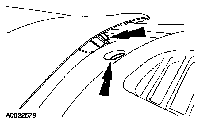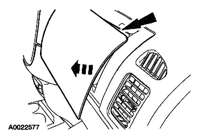 1. Position and align the two passenger air bag module trim cover alignment pins (one shown) to the instrument panel openings.