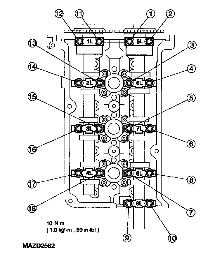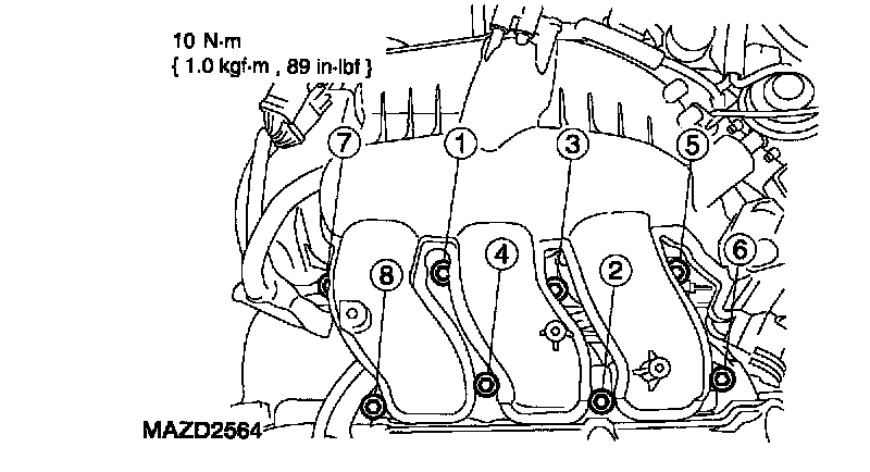 Lower intake manifold bolts 10 Nm (1.0 kgf-m, 89 inch lbs.)