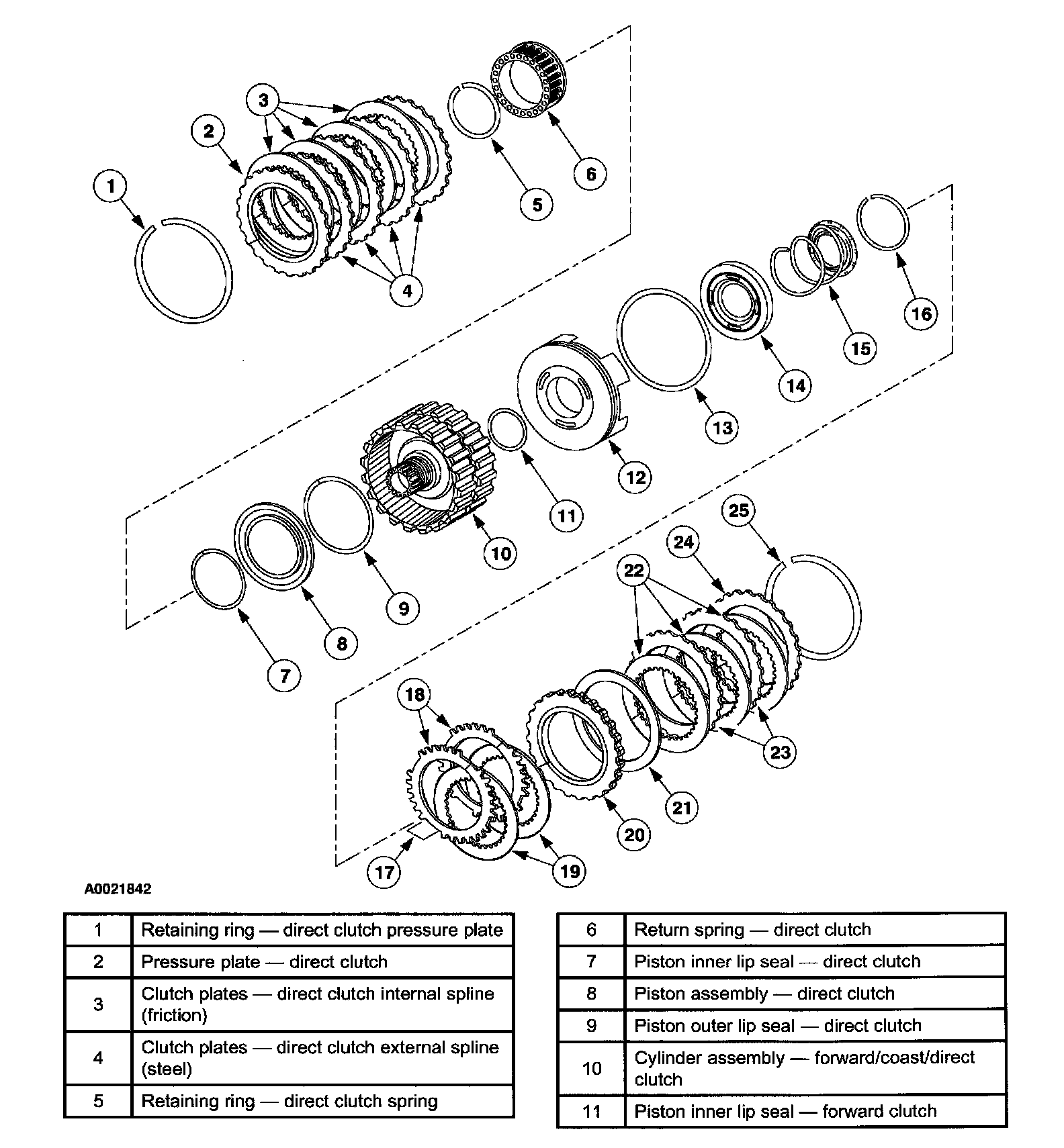 2. Disassemble the direct clutch pack.