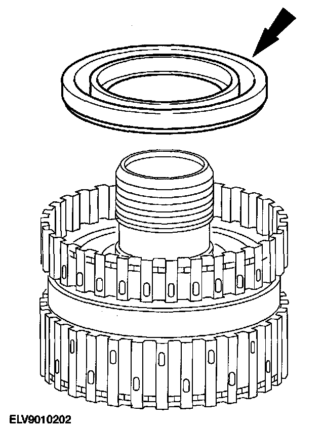 7. Remove and discard the direct clutch piston inner lip seal from the forward/coast/direct clutch cylinder assembly.
