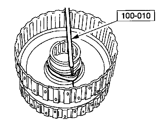 13. Using the special tool, remove and discard the forward clutch piston inner seal from the forward/cost/direct clutch cylinder assembly.