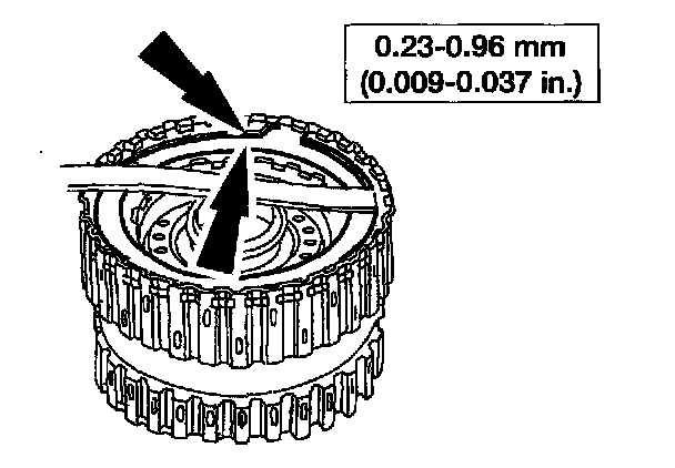 11. Using a feeler gauge, measure the clearance between the forward clutch pressure plate and the forward clutch pressure plate retaining ring.