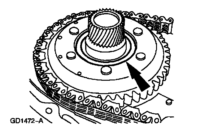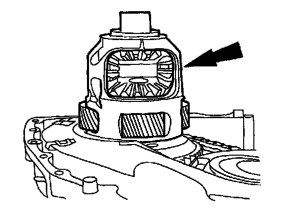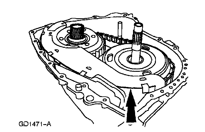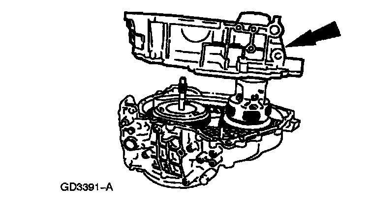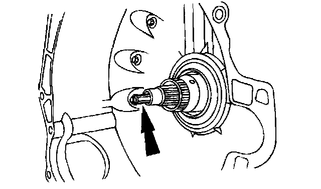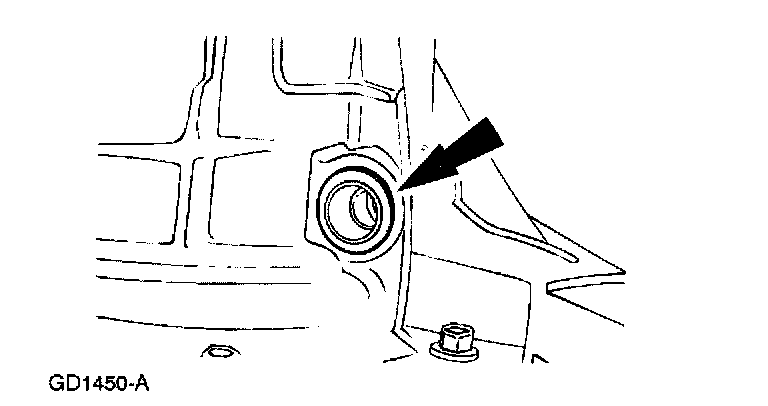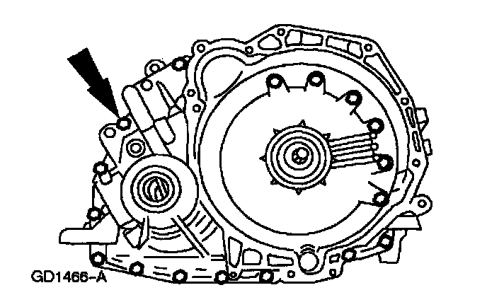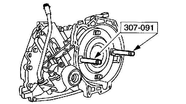 ^ Do not tilt the torque converter when removing it. This can damage the torque converter hub.