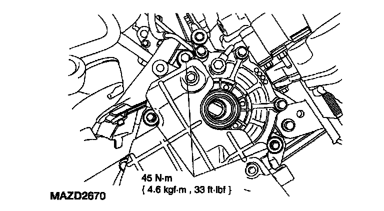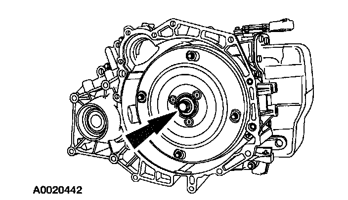 ^ The torque converter hub must be fully seated into the transaxle pump drive gear.