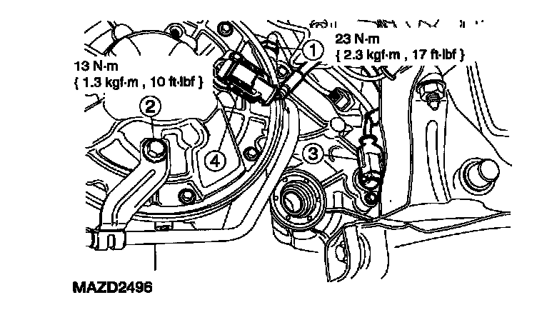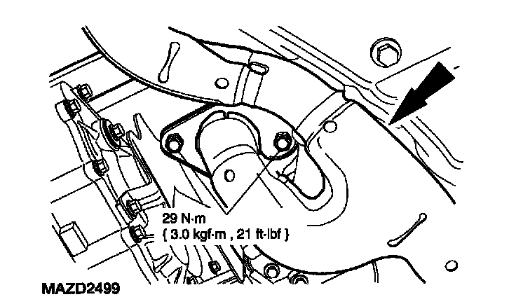 7. Move the transaxle assembly toward the engine assembly and install the bolt.