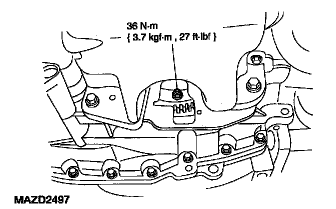 29. Connect the HO2S sensor wire to the oil pan bolt studs and connect the connector.