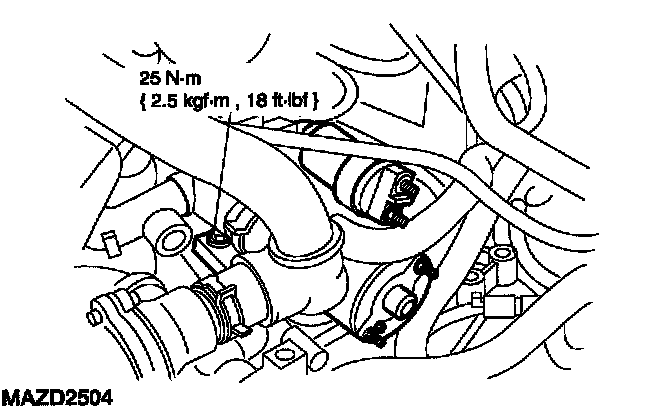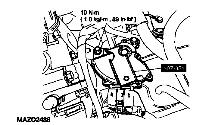 45. Install the starter motor, and install two bolts.