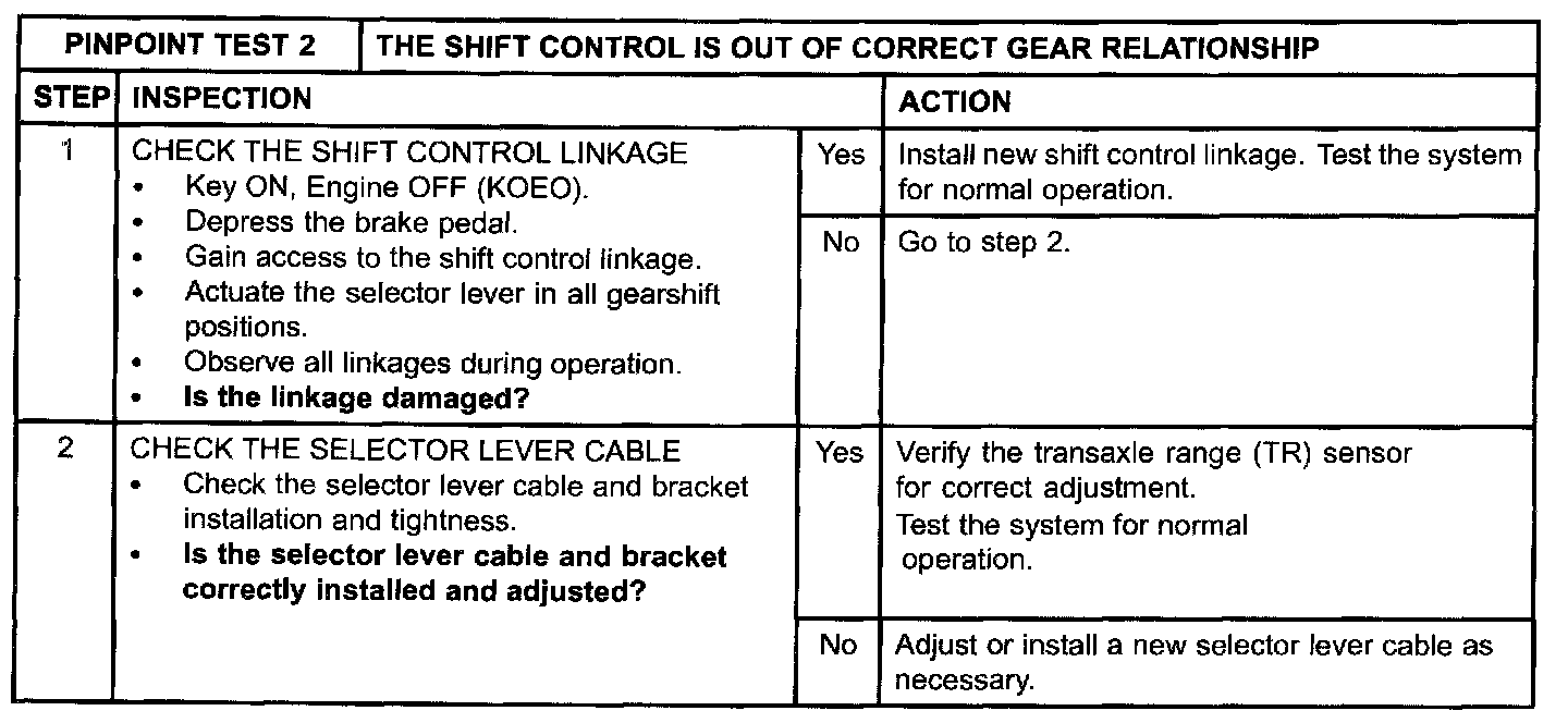PINPOINT TEST 2: THE SHIFT CONTROL IS OUT OF CORRECT GEAR RELATIONSHIP