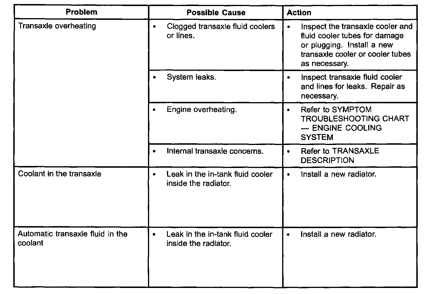 SYMPTOM TROUBLESHOOTING CHART-AUTOMATIC TRANSAXLE COOLING