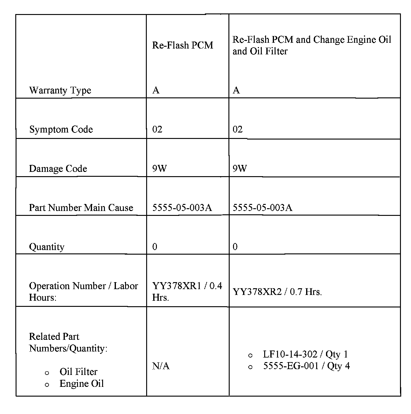 The PCM Calibration Part Numbers listed above are provided for PCM reprogramming purposes only. These are not necessarily the same Mazda part numbers used to order an actual PCM through the Mazda Parts System. It is not necessary to order a PCM as part of this repair procedure.