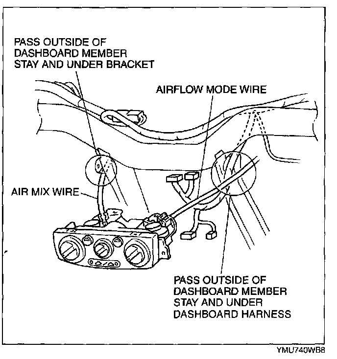 5. Adjust the front climate control unit wire. (See FRONT CLIMATE CONTROL UNIT WIRE ADJUSTMENT.)